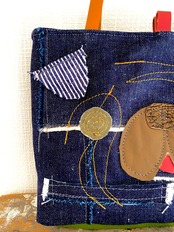 デニムの生地同士を重ね合わせてツギハギにしました。